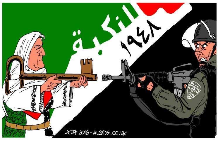 » 15 mai 1948 -15 mai 2016, soixante-huit ans déjà, soixante-huit ans depuis le début du drame des Palestiniens, soixante-huit ans de souffrance, de malheurs et de massacres pour un peuple digne, soixante-huit ans depuis le début de cette injustice imposée à un peuple sur sa terre, soixante-huit ans de déportation d’un peuple pour le remplacer par un autre peuple.
