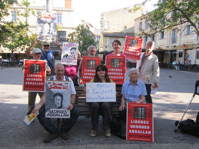 ✭ Mardi 2 juin, comme tous les premiers mardis du mois, le comité bordelais pour la libération de Georges Abdallah a tenu une table d'informations devant le cinéma UTOPIA.