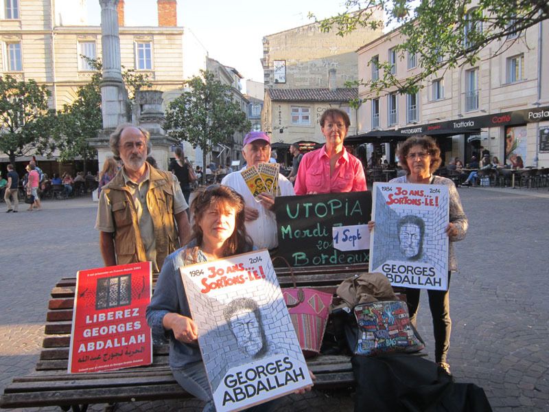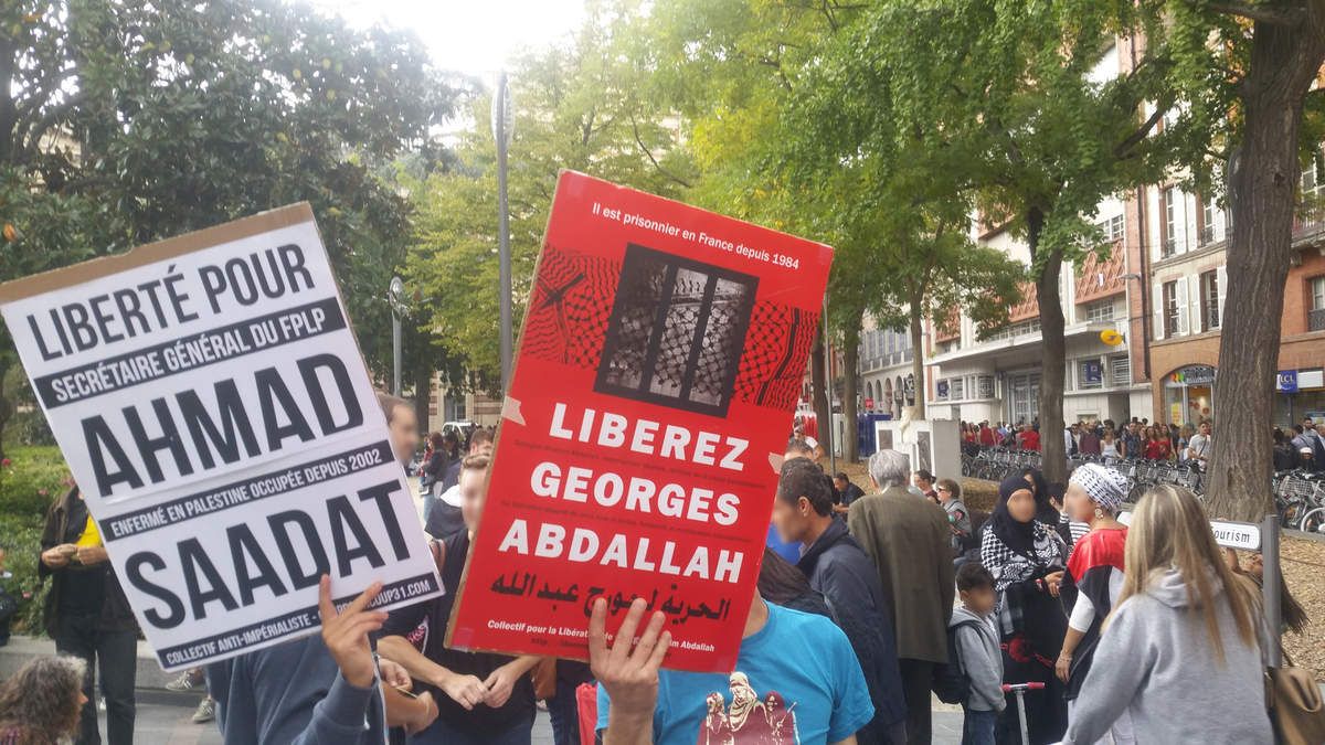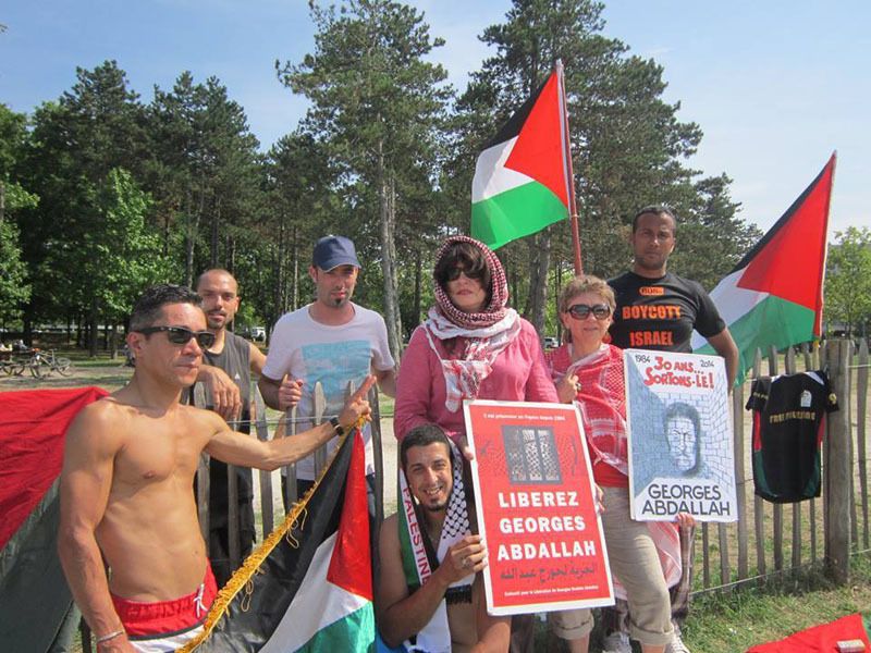 "(…) parmi les nombreux et nombreux prisonniers palestiniens, un se trouve en France depuis 1984. Il se nomme Georges Ibrahim Abdallah. Libanais, il a combattu parmi les réfugiés palestiniens dans les années 70 et 80. Il est maintenu en prison depuis presque 32 ans par l’État français pour avoir résisté et combattu l’impérialisme et le sionisme alors qu'il est libérable depuis 1999 selon le droit français. (…)"