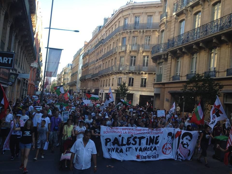 ✭ Ce vendredi 17 juillet , des militants et militantes de BDS – Toulouse (Boycott – Désinvestissement – Sanction) et du collectif anti-impérialiste Coup pour Coup 31 ont fait une action de visibilité au départ de l'étape du jour du Tour de France à Muret, près de Toulouse.