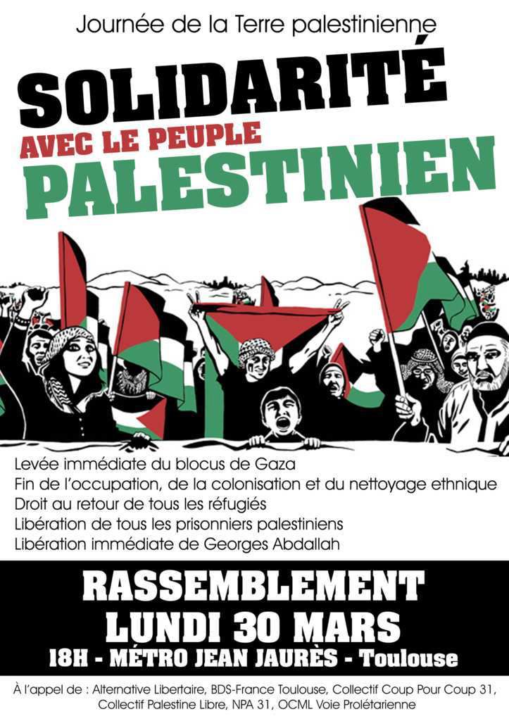 Alternative Libertaire, BDS-France Toulouse, Collectif Coup Pour Coup 31, Collectif Palestine Libre, NPA 31, OCML Voie Prolétarienne,