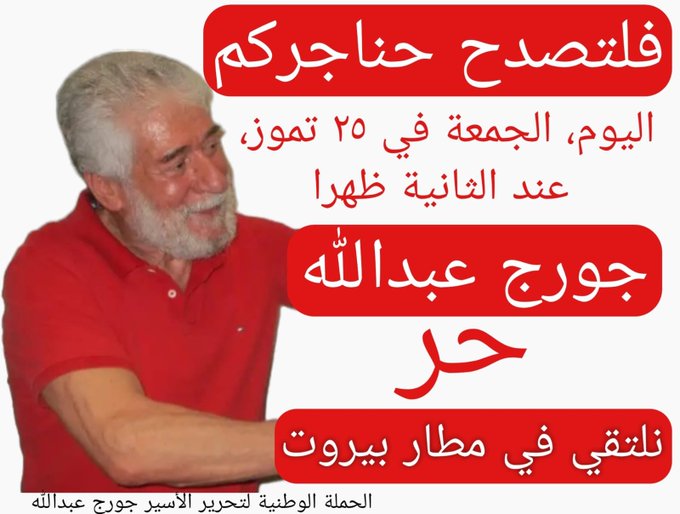 Lorsqu’on lui a demandé s’il avait un projet politique après sa libération, Abdallah a répondu : « Georges Abdallah est un simple combattant issu des rangs de notre peuple. » Il a expliqué qu’il rencontrerait les forces politiques et populaires au Liban afin de déterminer comment il pourrait servir au mieux son pays. « Je vais écouter, observer et voir de mes propres yeux ce que je ne pouvais auparavant percevoir que de manière abstraite derrière les barreaux », a-t-il expliqué. « Je parlerai avec tous ceux qui trouveront le temps de me rencontrer et d’entendre ce qu’ils pensent que je peux apporter au projet national, à la construction de l’État, à la construction de l’armée, à la lutte contre l’ennemi sioniste et à la protection de notre société. »